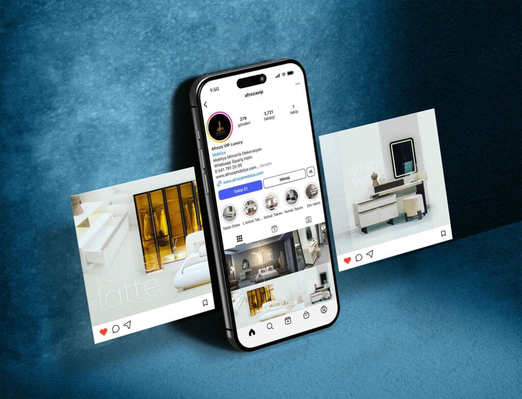 Mobilya sektörüne özel tasarımlar geliştirerek Afroza Mobilya’nın sosyal medya gönderilerini hazırlıyor, hedef kitleye yönelik reklam stratejileri oluşturuyoruz. Dijital pazarlama desteğimizle markanın online görünürlüğünü artırıyoruz.
